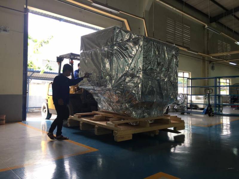 Sau đó sẽ tiến hành vận chuyển lên xe, di dời đến kho xưởng mới và tiến hành lắp ráp đúng với kỹ thuật, đảm bảo vận hành ổn định và nhanh chóng.